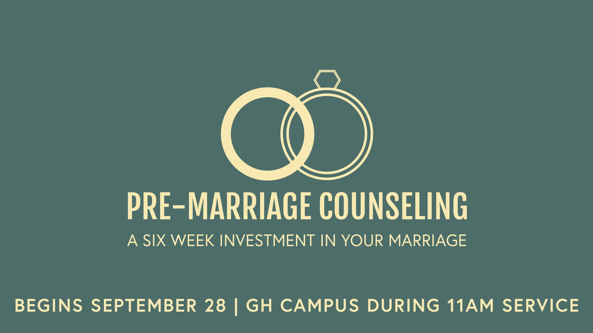 *Pre-marriage counseling is available for regular attenders or members of Harvest. Each couple must be engaged with a tentative wedding date. Couples who do not attend Harvest, who are dating, or who do not have a wedding date, will not qualify for pre-marriage counseling at this time.*